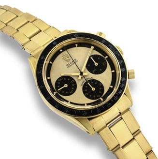 La patine des compteurs devenus chocolat... c’est ce qui a permis à ce modèle à cadran dit « panda tropical » d’atteindre la somme de 336 000 euros chez Artcurial en juillet 2014. Un record mondial pour ce modèle surnommé également « ultimate coffee panda » de 1969 parfaitement entretenu et un record aux enchères en France pour une Rolex